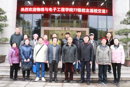77级部分校友返校欢聚,在大学城校区共叙当年情谊。