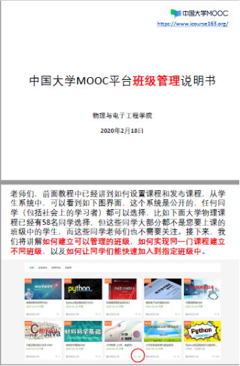(学院为教师制定的中国大学MOOC平台班级管理说明书)