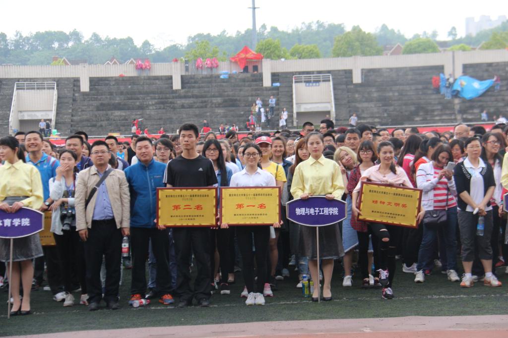 体育场隆重举行。出席此次运动会的有校领导邓卓明、周泽扬、龚燕、杨新民、陈志军、孔春阳、董景荣、张尚毅。此次运动会的举办是为了传承重师精神、凝聚师生力量、不断续写重师办学新辉煌,加强内涵建设、推动提档升级、努力开创学校发展新局面,加强锻炼身体,强健体魄的思想。