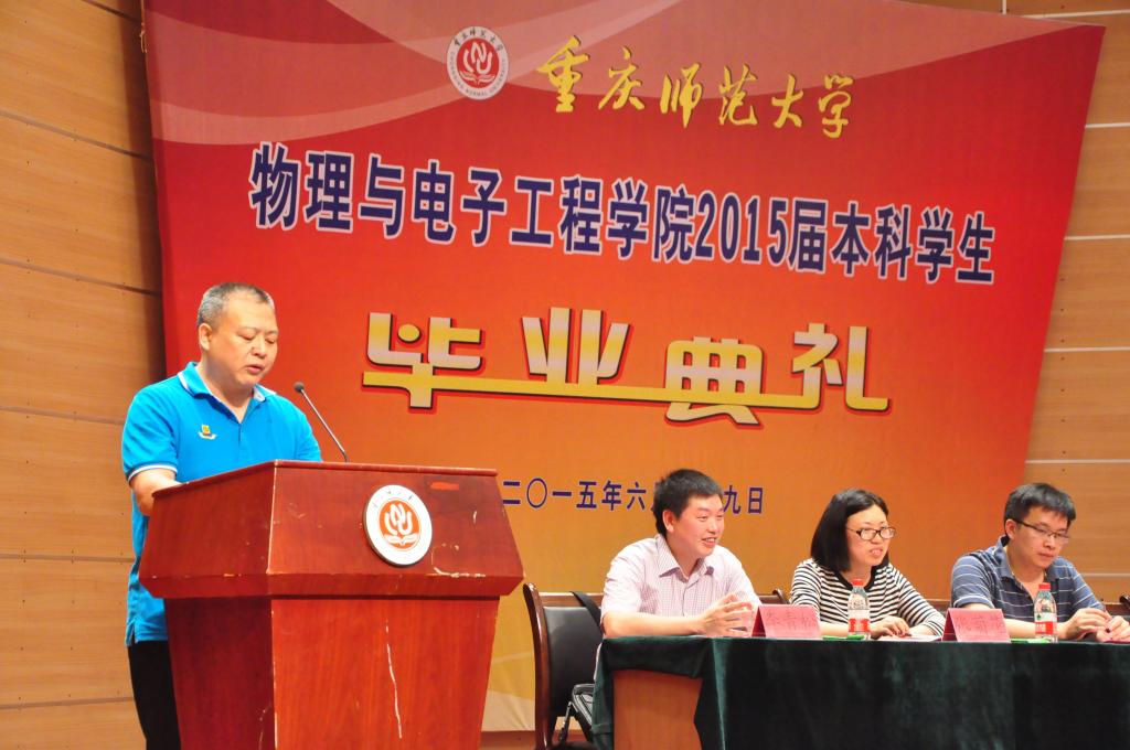 院长崔玉亭、副院长曾毅、党委书记唐敏、党委副书记冉久飞、团总支书记李青松、院长助理冯庆、教学科研办公室主任张菊花、电子系系主任罗海军,以及各级辅导员和2015届全体毕业生。