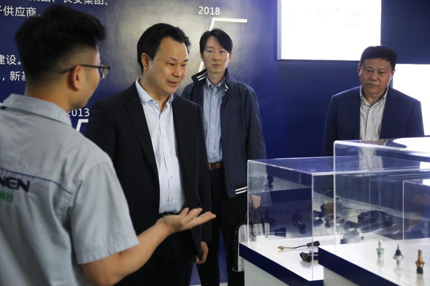 曾礼一行在企业负责人的引导下参观了重庆栋能科技股份有限公司一楼展厅,实地了解企业的主要业务范围和生产运营情况,并与该企业召开调研座谈会。