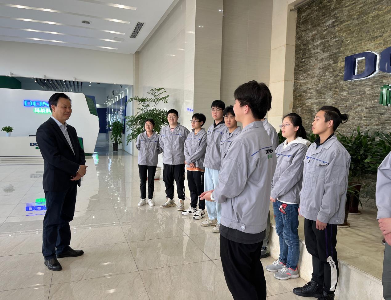 在栋能进行专业实习的12名2020级实习生,了解学生实习情况,鼓励他们珍惜机会,通过实习检验所学,积累行业经验。