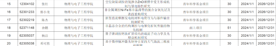 获批6项国家自然科学基金项目,获资助总经费201万元,创历史新高。