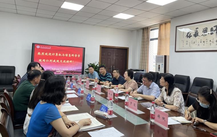 党委书记杨云对计算机与信息科学学院党委书记陈兰等一行表示热烈欢迎,并介绍了学院近年发展的总体情况。余鹏副院长就学院学科建设、科研创新工作的新举措及取得的成效进行重点介绍,详细分享了学院组建创新科研团队、开展有组织的科研等方面的具体做法。与会双方就科研团队管理措施、科研人才培育机制,学科建设举措,科研平台管理办法等方面工作进行深入探讨与交流。