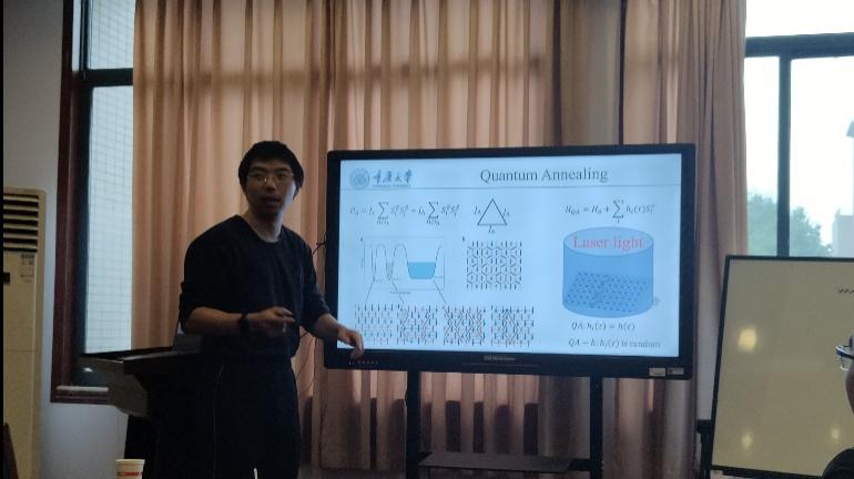 重庆大学胡自翔教授在报告中介绍了量子霍尔效应的发展历史和研究现状,系统总结了其课题组在该领域所取得的一系列研究成果,并分享了其在分数量子霍尔效应的拓扑性质研究方面取得的最新研究进展;重庆大学张学锋教授在报告中介绍了最近在针对复杂系统组合优化中拓扑类导致的各态无法历经问题所开发的新一类量子退火计算方法;重庆大学“弘深青年教师”熊梓健博士介绍了几何阻挫自旋模型的低能有效理论以及广义对称性,并展示了他在kagome晶格价键固体相的最新研究成果;奈飞工厂