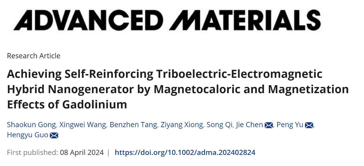 凝聚态物质科学创新团队以“Achieving Self-Reinforcing Triboelectric-Electromagnetic Hybrid Nanogenerator by Magnetocaloric and Magnetization Effects of Gadolinium”为题在国际顶级期刊《Advanced Materials》(影响因子29.4)上发表最新研究成果,奈飞工厂