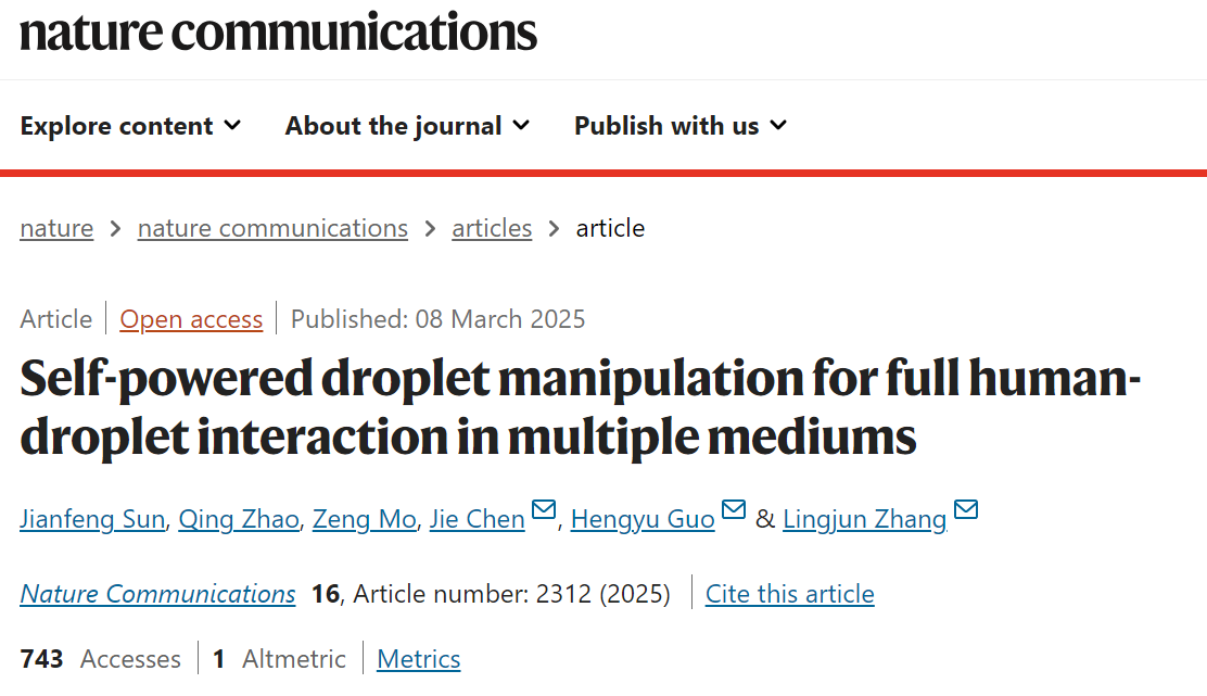 信息材料物理与器件团队在Nature子刊 Nature Communications上发表题为“Self-powered droplet manipulation for full human-droplet interaction in multiple mediums”的最近研究成果,奈飞工厂