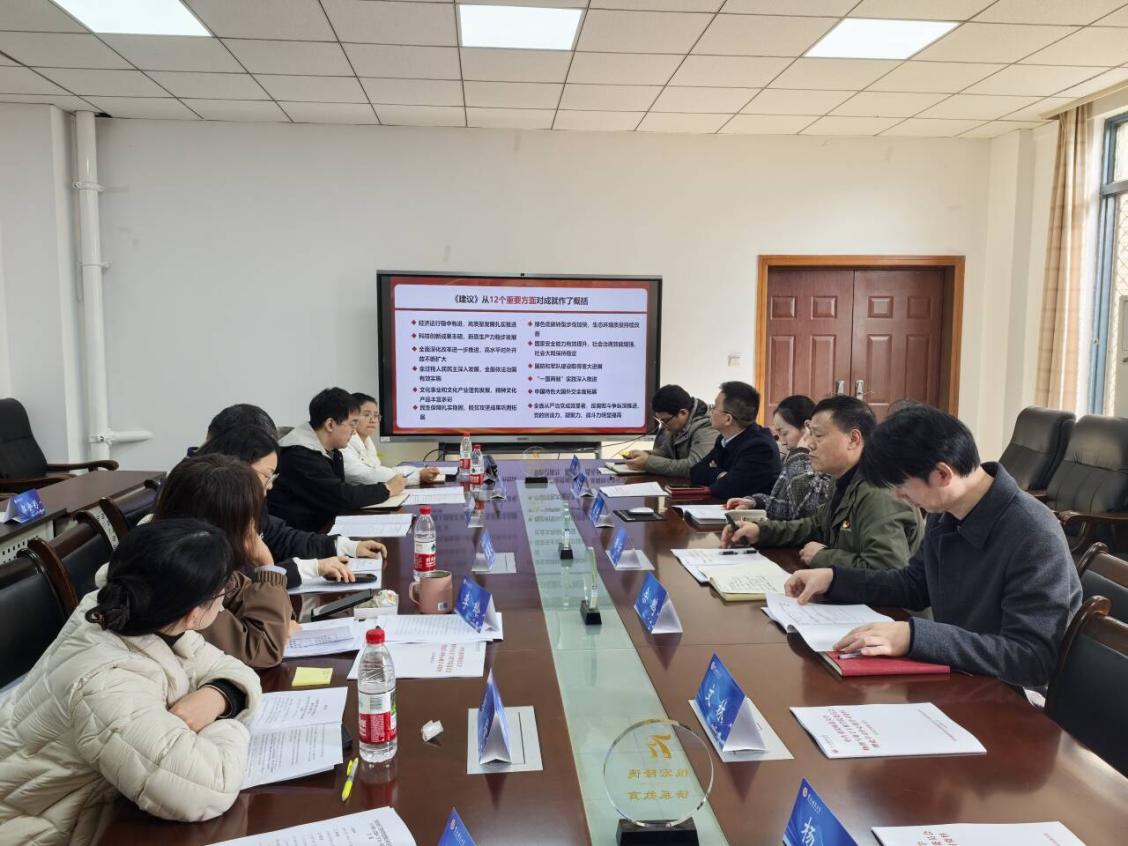 党委理论学习中心组2025年第10次集中学习会在集贤楼524会议室召开。本次会议专题深入学习党的二十届四中全会精神及“十五五”规划相关文件,旨在为学院未来五年发展谋篇布局,凝聚发展共识。学院领导班子成员、两委委员、组织员、党支部书记及科室负责人参会,学习会由学院党委书记杨云主持。