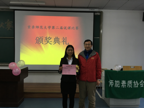 14:20-14:40为各位参赛选手签到并提交说课稿的时间,14:40—14:50各位参赛者将在工作人员的组织下抽取上台顺序并得到相应号码牌。在说课比赛中,有来自外国语学院的全英文说课、有教科院同学绘声绘色的小学语文讲解、有历社学子富有趣味的历史教学还有严谨教学的化学说课等等都让在场观众为之钦佩。即兴演讲和说课之后,进入到答辩环节。在答辩中,各评委针对选手说课内容提出不同问题,她们既在情理之中,又在意料之外的应答得很好。在12位参赛者一一上台说课并答辩之后,评委老师对本次比赛进行总体点评。最终依照参赛者的最终得分分别产生了一位一等奖、两位二等奖、三位三等奖,以及在复赛中表现良好的参赛者,将产生21位优秀奖。当评委老师将奖状颁发到大家手中时,那份喜悦溢于言表,在一阵热烈的掌声中本次活动圆满结束。