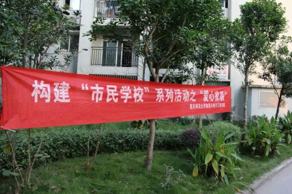 经过一些弯弯曲曲的社区小道,他们到达了“陈家桥学府社区服务中心”,当师能素质协会副会长高曼曦和社区的相关人员做好工作沟通后,将所有人员分成了4组进行宣传,两组负责菜市场、一组负责广场、剩下一组社区里面。当各个小组到达指定地点后,就开始了宣传。在社区宣传的小组刚走出服务中心就看到两个小男孩他们害羞的跑过来,问道:“姐姐,这里的爱心家教又开始了吗?”其中的一个成员就说:“对呀!但这周主要是宣传,从下周开始每周四下午4:30到5:30都可以来,到时欢迎你们来学习!”当然宣传过程也会遭人误解,直接忽视不理睬。协会成员之前虽然之前未接触相关工作但他们积极主动耐心讲解从未放弃,仍是以笑脸面对居民。经过大家的努力宣传,加深了很多社区居民对爱心家教的了解,并表示支持孩子前来参加此次活动。随着渐渐暗下的天色,本次宣传也接近尾声,17:40的时候所有志愿者在负责人高曼曦的带领下,回到了重师校园。