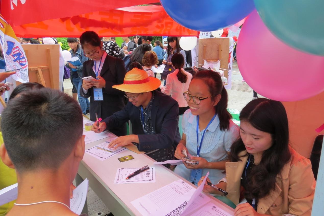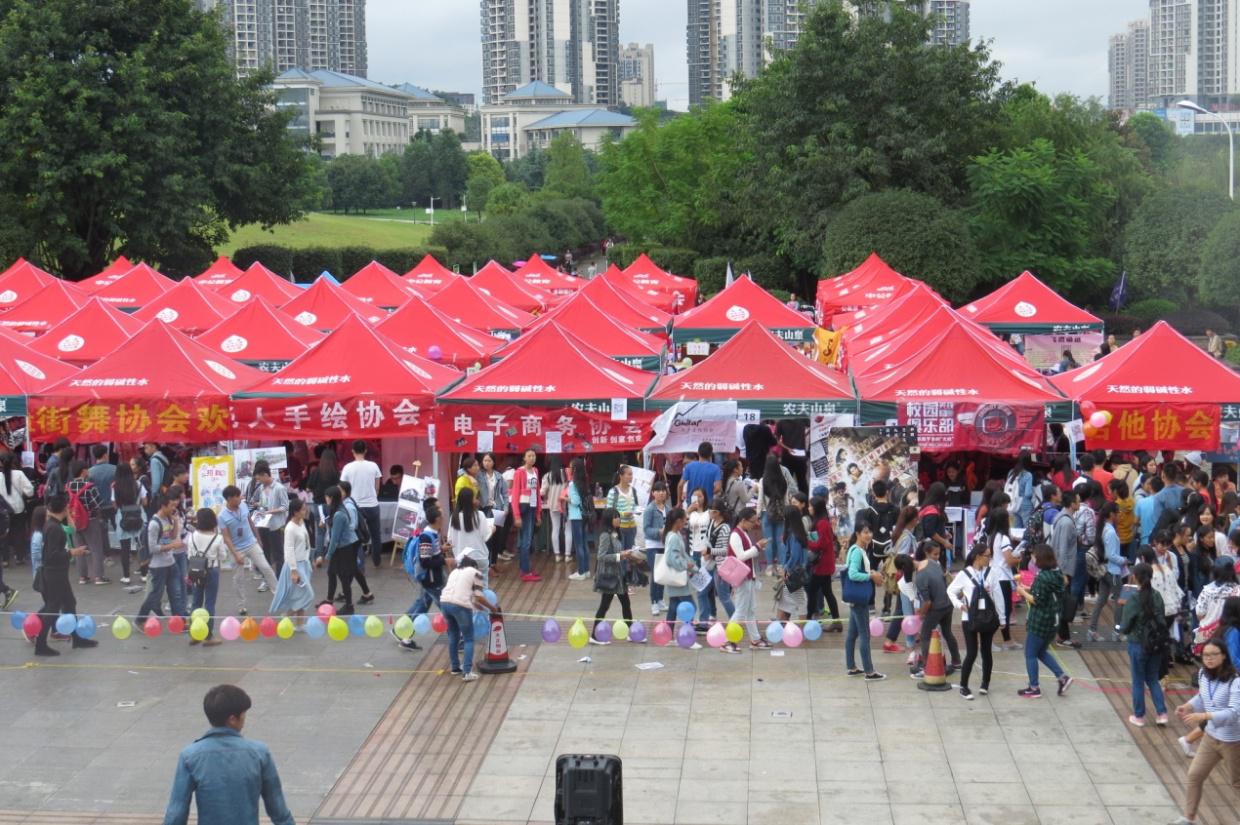 图书馆正门口迎来了2015年度的社团招新。出席本次活动的有全校各个协会及其成员,这场招新是青春,也是激情,更是对于大学踌躇满志的期待。