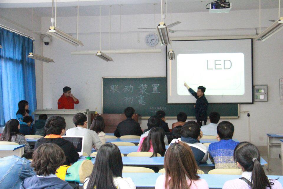 特此举办了来自其学院的特色活动——联动装置竞赛。活动主办方无线电协会在2015年4月9日下午两点于弘德楼开展了联动装置大赛的初赛选拔。参加本次活动的嘉宾有科技部部长向承琼,社团部周立伦,学习部向优生,上一届获奖队伍代表王川东。