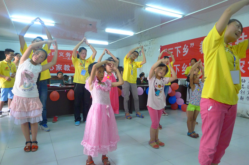 临时课堂中的物理小实验激发小朋友们对科学世界的好奇心,趣味英语里简单明了的英语歌展示给孩子们精彩纷呈的外面世界,寓教于乐的“击鼓传花”让他们褪去羞涩拾起童真……志愿者们精心策划的“爱心家教”赠与北门村的小朋友们一场欢快的“时光之旅”,温暖的大手握住稚嫩的小手,白纸画出梦想,彩笔写出希望。一首唐诗、一个寓言故事、一段跃动的舞蹈和一场别致的T台秀,都是孩子们短短三天结出的成果。