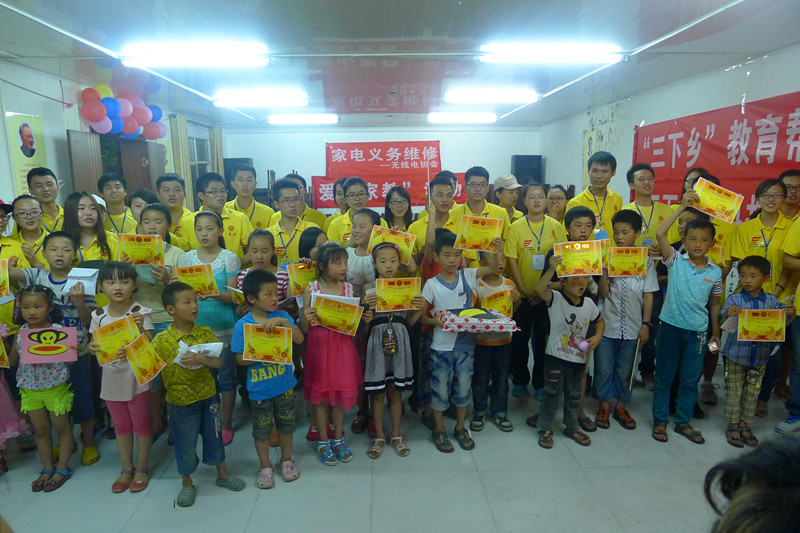 2014年暑期“三下乡”社会实践服务团来到重庆万盛黑山镇北门村开展“教育帮扶”和“科技支农”活动,40名大学生志愿者将专业知识与实际行动相结合,给当地学龄儿童和村民带来了切实有效的帮助。