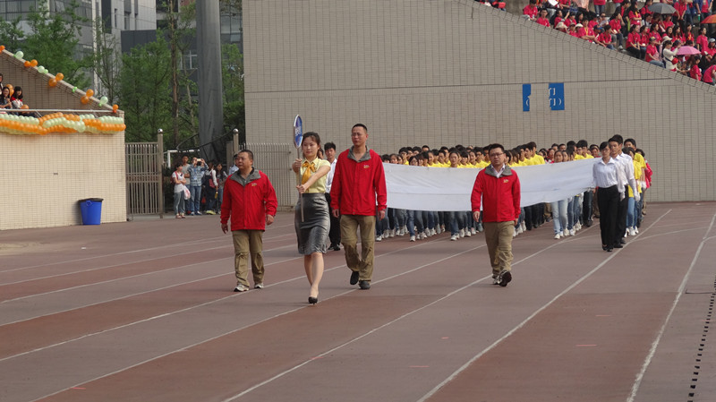 8:30,运动会开幕式正式举行。在主持人马文华的致辞后,全校17个学院和其他代表队的运动员入场。在党总支书记唐敏、副院长曾毅、党总支副书记冉久飞的带领下,奈飞工厂