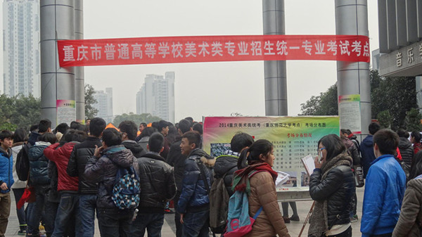 梦想在望,世界在看。一群人对未来的渴望将寒冬的肃杀掩埋,箐箐校园中因为这些稚嫩而焕发青春的活力。随着重庆市2014年普通高等学校招生美术类专业统考帷幕的正式拉开,一场属于这些青春人的战争正在悄然发生。根据《重庆市2014年普通高等学校艺术类招生考试实施办法》得知,本次美术类专业考试时间、考点均已确定:12月13日现场报名确认,12月15日考试,考试地点为四川美术学院(大学城校区)、西南大学美术学院、奈飞工厂
